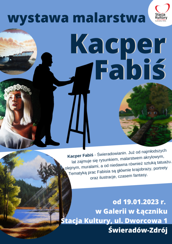 W Galerii w Łączniku Stacja Kultury – Serce Miasta Świeradów-Zdrój zagościła wystawa malarstwa młodego, niesamowicie zdolnego Świeradowianina Kacpra Fabisia Wystawa jest do oglądania wyłącznie z zewnątrz.Serdecznie zapraszamy!