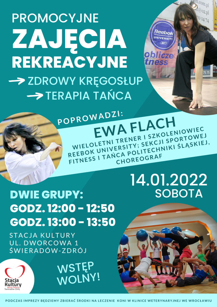 Zapraszamy naPROMOCYJNE ZAJĘCIA REKREACYJNEz Panią Ewą Flach, wieloletnim trenerem i szkoleniowcem Reebok University; Sekcji Sportowej Fitness i tańca Politechniki Śląskiej DWIE GRUPY:GODZ. 12:00 – 12:50GODZ. 13:00 – 13:50Wstęp wolny! _______________________________________ Co w programie? – ZDROWY KRĘGOSŁUP – kombinacje ćwiczeń wzmacniających oraz rozciągających, kształtujących tzw. mięśnie posturalne oraz fazowe, odpowiedzialne za utrzymanie właściwej postawy oraz prawidłowe funkcjonowanie i […]