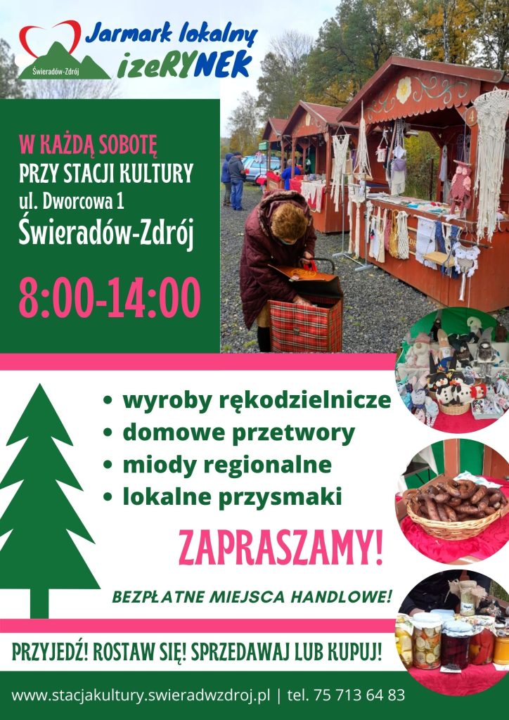 Przypominamy, że co sobotę przy Stacja Kultury – Serce Miasta Świeradów-Zdrój odbywa się lokalny IzeRYNEK, na którym zakupić można izerskie rękodzieło oraz regionalne przetwory i wyroby spożywcze Zapraszamy od 8:00 do 14:00
