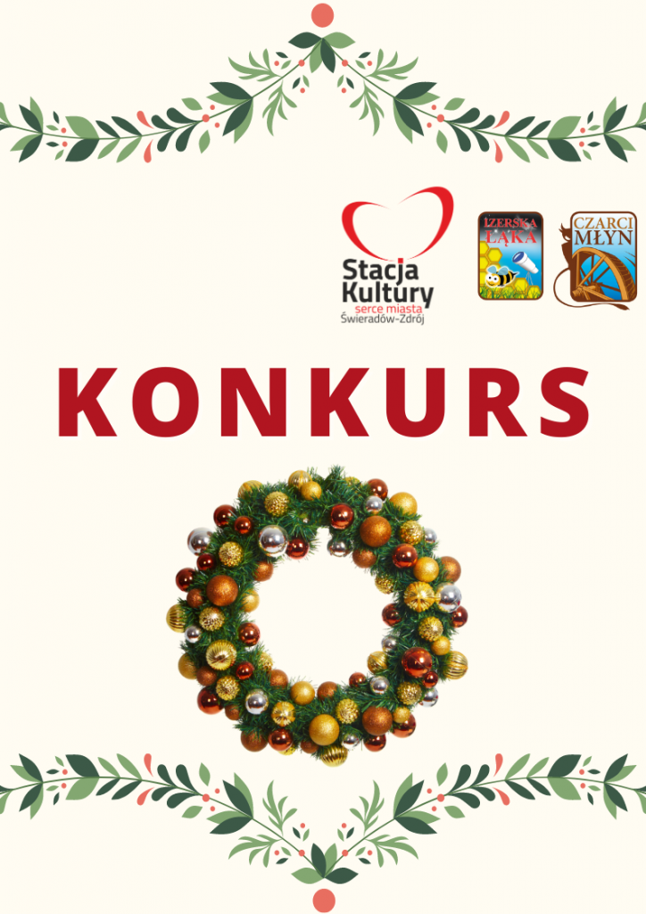 REGULAMIN KONKURSU na „Najpiękniejszy Bożonarodzeniowy wianek z naturalnych materiałów” organizowany przez Miejskie Centrum Kultury, Aktywności i Promocji Gminy „Stacja Kultury” w Świeradowie-Zdroju, ul. Dworcowa 1, 59-850 Świeradów-Zdrój KOORDYNATORZY KONKURSU I OSOBY WSPIERAJĄCE: Centrum Edukacji Ekologicznej „Izerska Łąka” (Katarzyna Rzeczkowska – koordynator konkursu) „Czarci Młyn” – Anna Martynowska-Pietrzyk Piotr Bigus. POSTANOWIENIA OGÓLNE Biorący udział […]