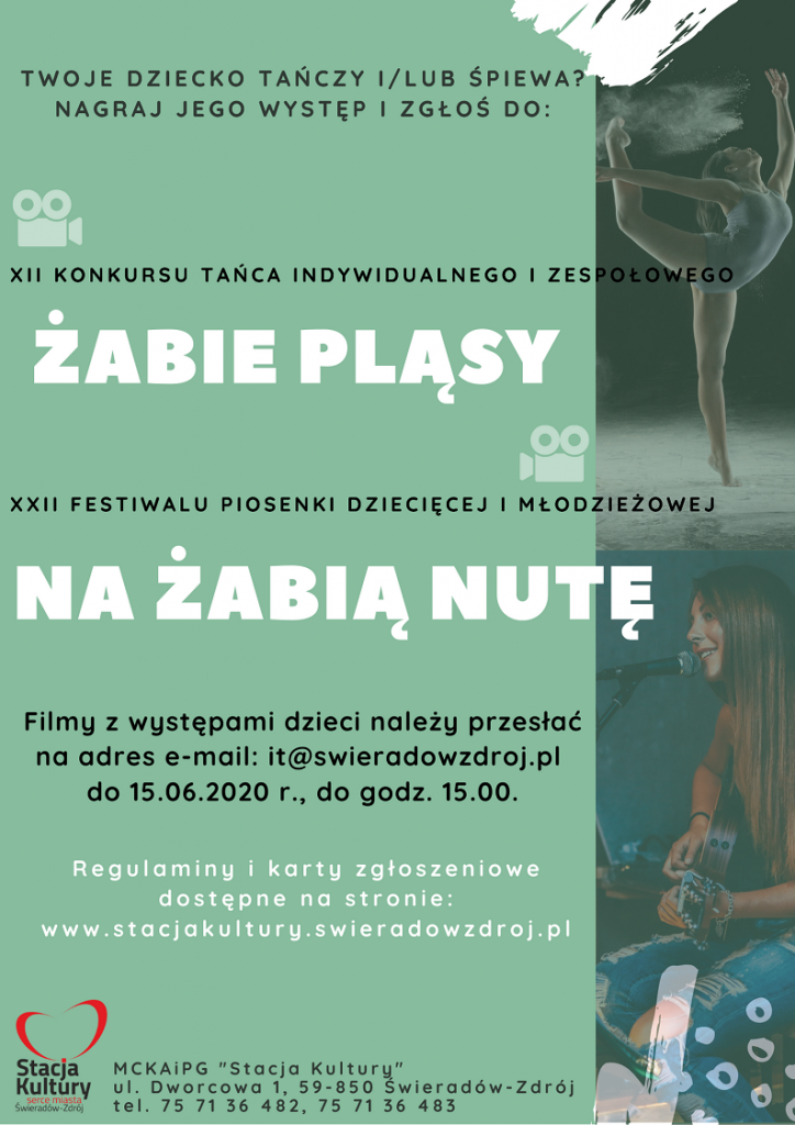 Do dnia 15 czerwca 2020 r. trwało zgłaszanie filmów na XXII Festiwal Piosenki Dziecięcej i Młodzieżowej na „Żabią Nutę” oraz XII Konkurs Tańca Indywidualnego i Zespołowego „Żabie Pląsy”. Do festiwalu muzycznego przystąpiło 15 uczestników, których filmy konkursowe zostały ocenione przez komisję w składzie: Grażyna Kasprzak (przewodnicząca), Beata Bielak, Marianna Marek, Włodzimierz Mazurkiewicz. Członkowie komisji biorąc […]