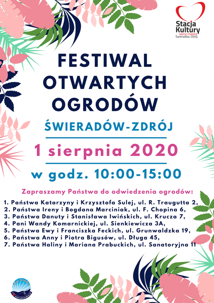 Festiwal Otwartych Ogrodów (wcześniej Dzień Otwartych Ogrodów) już na dobre wpisał się w kalendarz imprez naszego miasteczka. Jest to dzień, w którym uczestnicy konkursu na najpiękniejszy ogród/ balkon – Kwietny Świeradów-Zdrój – zapraszają Państwa do siebie i pokazują swoje pięknie ukwiecone posesje. W tym roku Festiwal Otwartych Ogrodów odbędzie się w sobotę, 1 sierpnia w […]