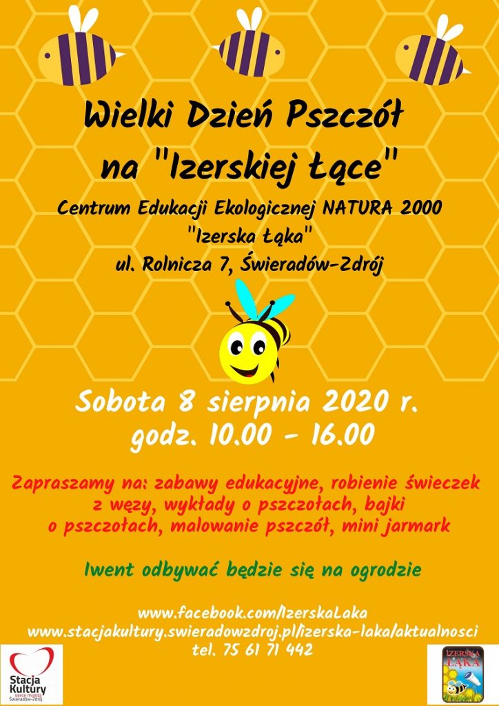 Wielki Dzień Pszczół na Izerskiej Łące odbędzie się w sobotę, 8 sierpnia br., w godz. 10.00-16.00. Program:O każdej pełnej godzinie tj., o 10.00, 11.00, 12.00, 13.00, 14.00 i 15.00 – wykłady o pszczołach (czas trwania ok. 20-25 minut). Po wykładzie odcinek uroczej bajki o cudnej, rezolutnej pszczółce (ok. 23 minuty).Zabawy edukacyjne na ogrodzie 10.00 -16.00 […]