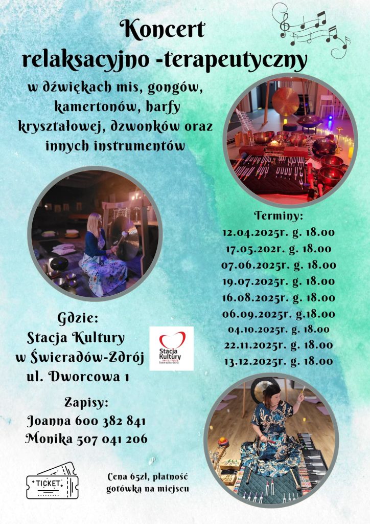 KONCERT RELAKSACYJNO-TERAPEUTYCZNY Na czym polega? Ponieważ fale dźwiękowe posiadają m.in. zdolność głębokiej i wszechstronnej penetracji komórkowej, dokonują pozytywnych zmian wspierających proces samoregulacji organizmu, którego celem zaws ze jest zdrowie. Przy udziale dźwięków mis, gongów oraz innych instrumentów pojawia się przestrzeń dla głębokiego relaksu, harmonizowania, uzdrawiania i regenerowania całego systemu człowieka, zarówno na poziomie fizycznym, emocjonalnym […]