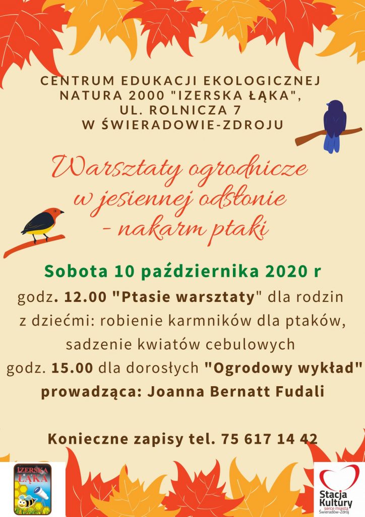„Izerska Łąka” serdecznie zaprasza w sobotę (10.10) na „Ptasie warsztaty”. Konieczne zapisy i konieczne maseczki. Jeśli pogoda pozwoli zajęcia odbędą się na ogrodzie pod wiatą.